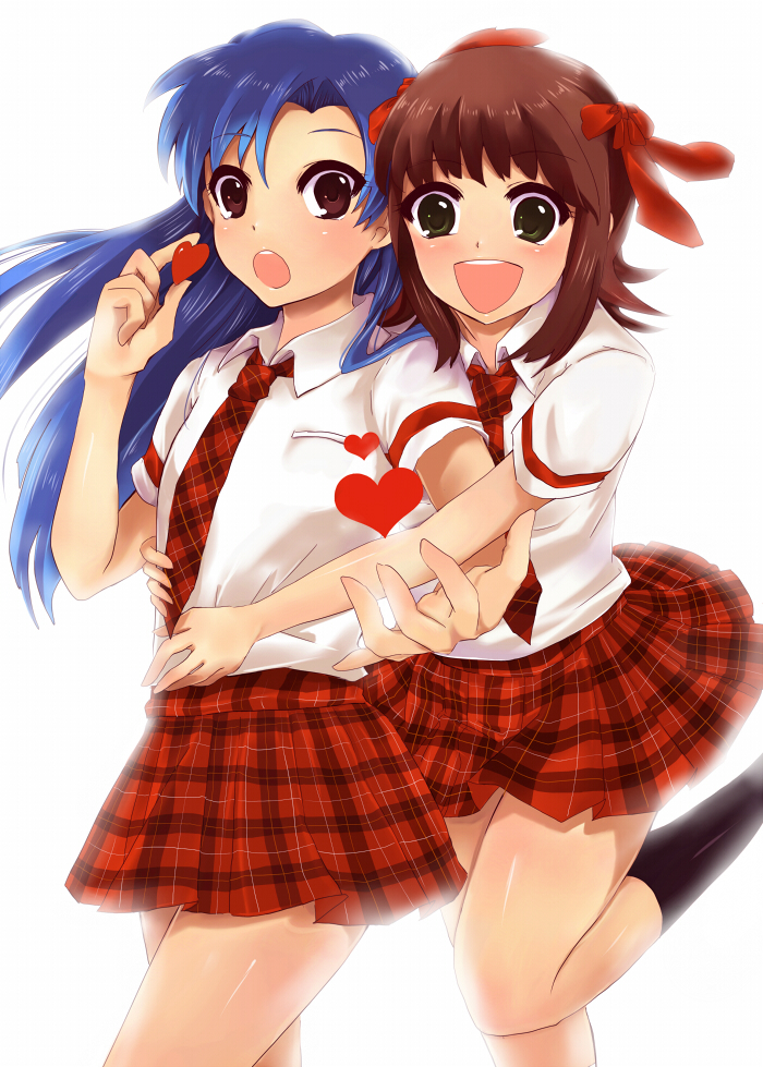 uof, ho'olheyak (arknights), muelsyse (arknights), arknights, absurdres, commentary request, highres, translation request, 2girls, anger vein, bikini, black bow, blue eyes, bow, breasts, closed mouth, elf, fang, green bikini, green hair, grey hair, hair between eyes, head tilt, kiss, large breasts, laurel crown, long hair, medium breasts, multiple girls, pointy ears, sidelocks, swimsuit, tail, yuri
