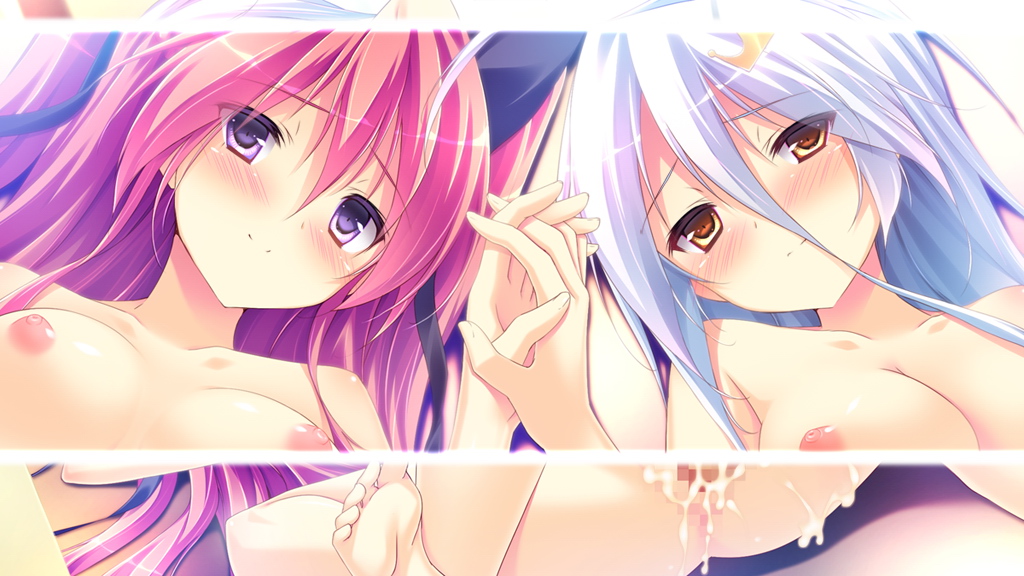 50ling, original, highres, 1boy, 1girl, breasts, bulge, cleavage, covered erect nipples, elbow gloves, erection, erection under clothes, gloves, greyscale, hetero, huge breasts, long hair, monochrome, sweat, thick thighs, thighhighs, thighs
