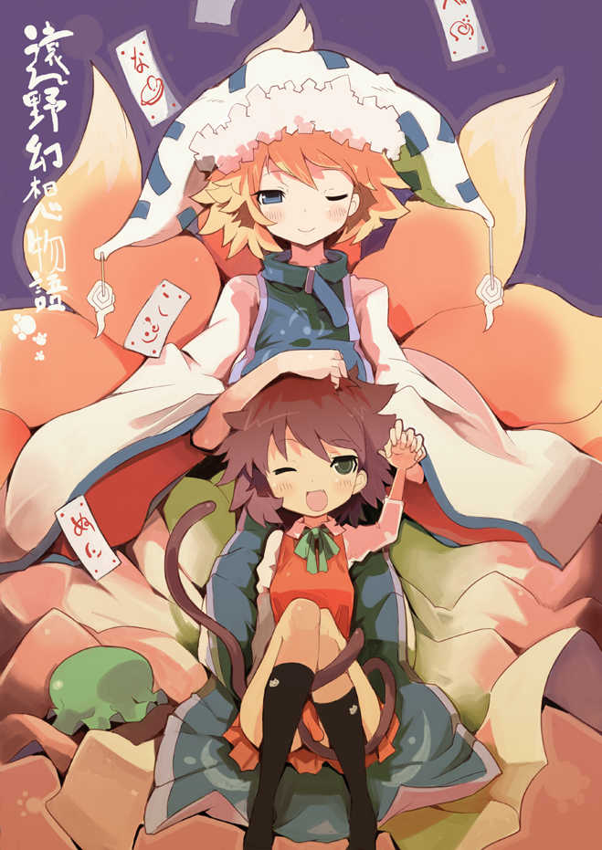 2girlsanimal earsblonde hairblue eyesbrown haircat earscat girlfemale focusfox earsgreen eyeshatmultiple girlsofudashort hairtailthighhighsunworn hatunworn headwear