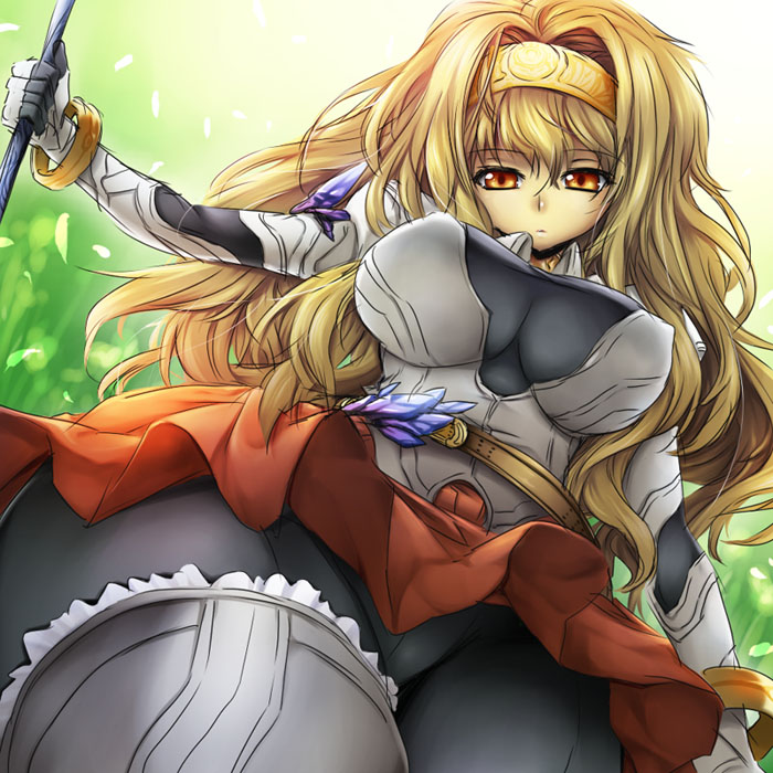 1girlblonde hairbreastscleavagefemale focusfrom belowlarge breastspantyhosesolothighhighsupskirtyellow eyes