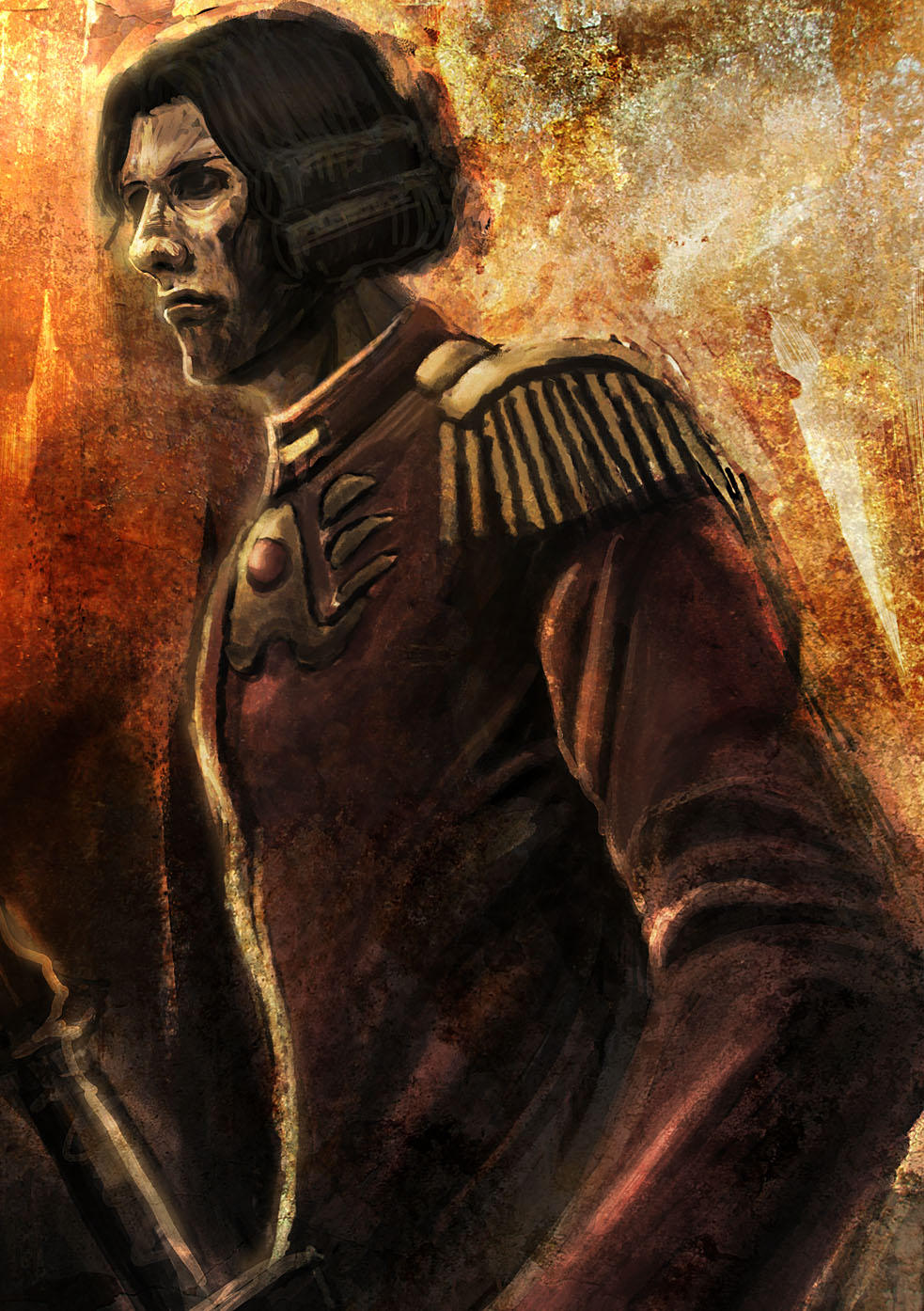 1boyabanblack eyesblack hairclosed mouthcoatdreadlocksepaulettesexpressionlessglasseslipslong sleevesmale focusmilitarymilitary uniformred coatsheathsheathedswordupper bodyweapon