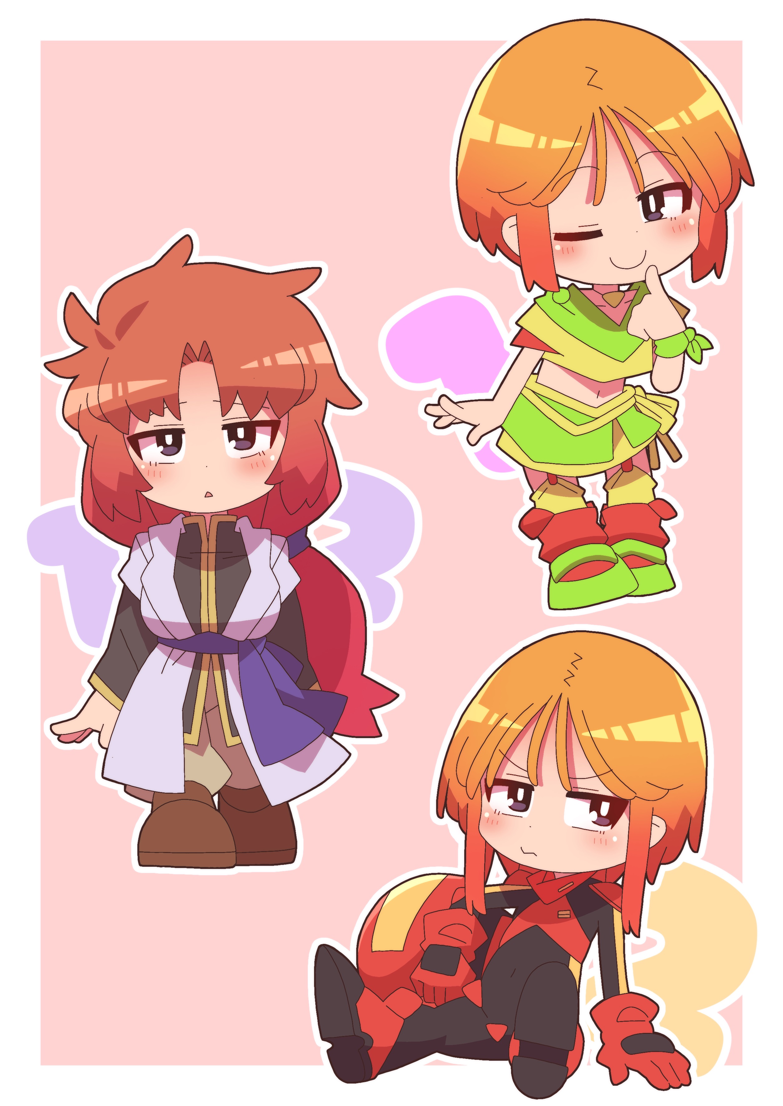 miyabi juri, miyamura miyako, ef (visual novel), 00s, 1girl, :d, ahoge, blush, cowboy shot, female focus, juliet sleeves, long sleeves, looking at viewer, monochrome, open mouth, orange theme, puffy long sleeves, puffy sleeves, shirt, short hair, simple background, skirt, smile, solo, white background