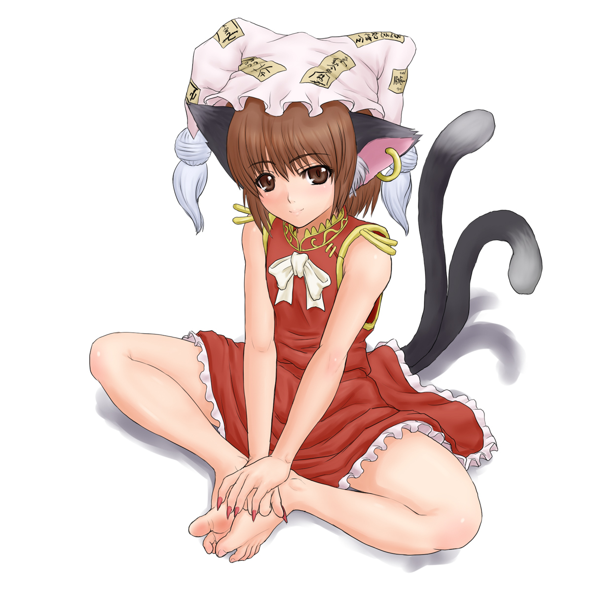 1girlanimal earsbarefootborrowed clothesbrown eyesbrown hairbutterfly sittingcat earscat girlcat tailchina dresschinese clothescosplaycrossed legsdouble tailsdressearringsfeetfemale focusfingernailsfull bodyhands on feetheadwear switchindian stylejewelrylong fingernailsmultiple tailsnail polishred nailsshort hairsimple backgroundsittingsolotailwhite backgroundyakumo ran (cosplay)