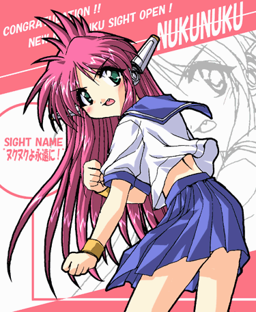1990s (style)1girlandroidblue sailor collarfemale focusgreen eyespink hairred hairretro artstylesailor collarschool uniformsolo