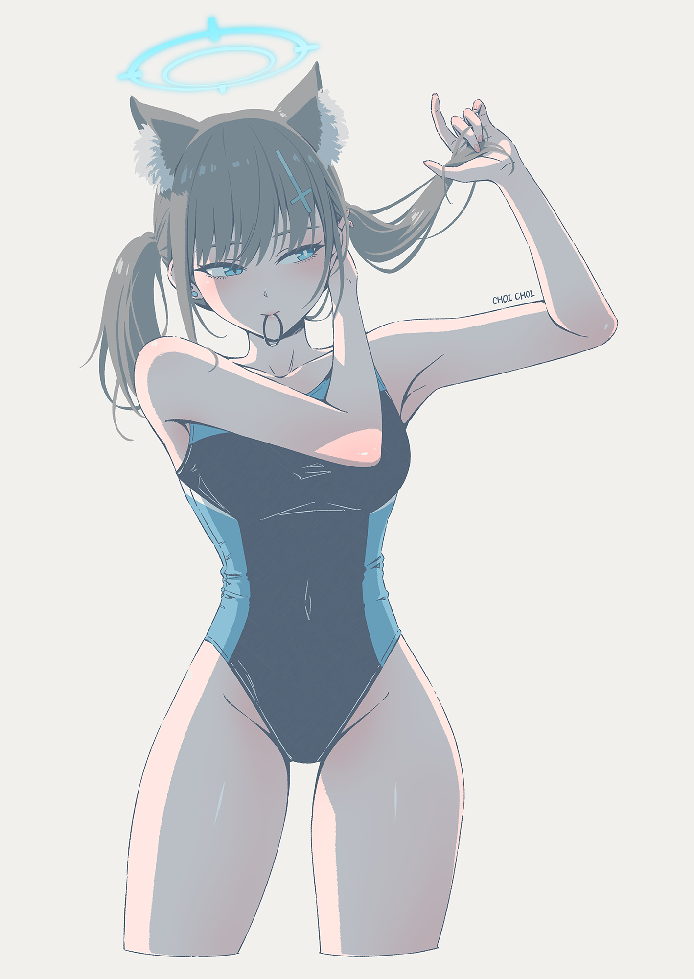 1girlartist namebreastshair ornamenthairclipmedium breastssimple backgroundsoloswimsuitwhite background