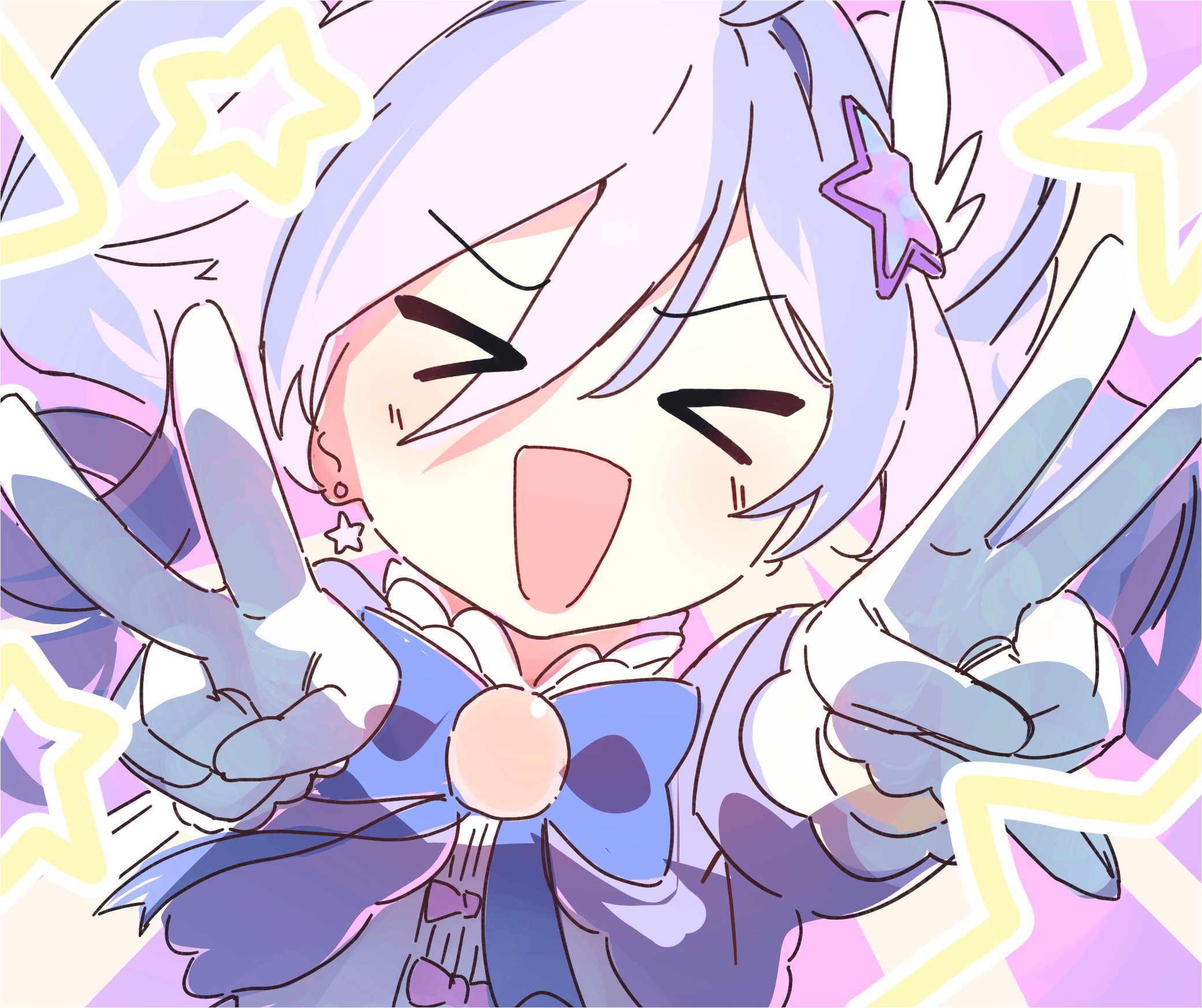 :d1boy1girlblue bowbowclosed eyesdouble vdrill hairearringsgloveshair ornamentjewelrymagical girlmulticolored hairopen mouthpink backgroundpink hairpurple hairsmilestar (symbol)star earringsstar hair ornamenttwin drillstwo-tone hairvwhite glovesxd