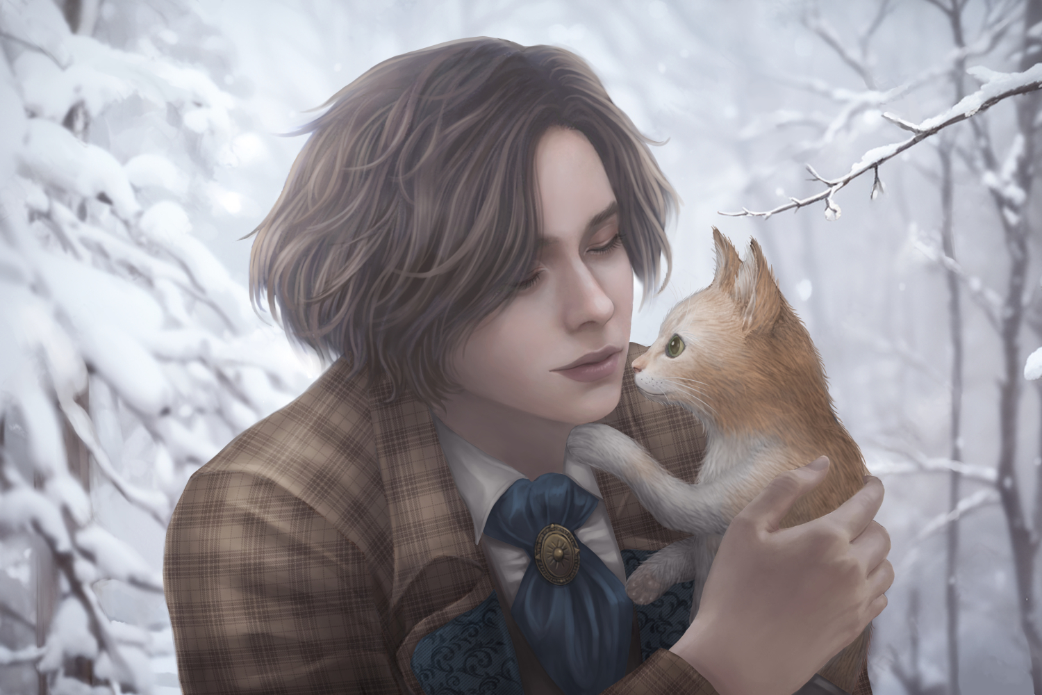 1boyanimalblurryblurry backgroundbrown haircatclosed eyeseyelashesholdingholding animalholding catmale focuspink lipsspring (lies of p)winter
