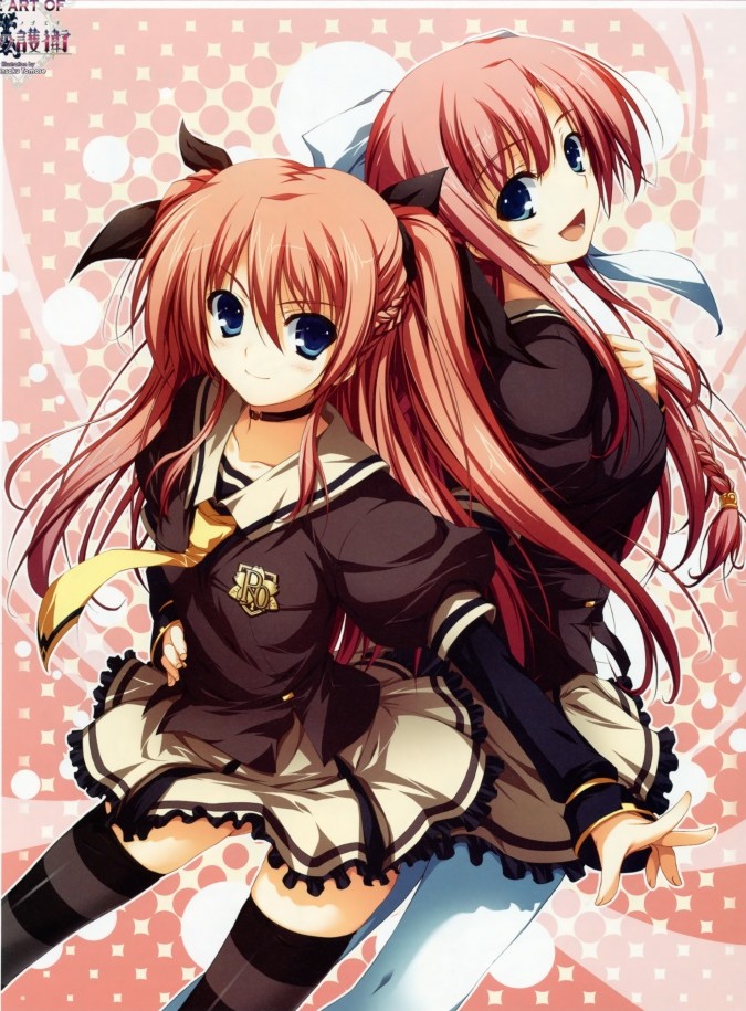 2girlsmultiple girlsschool uniformsiblingssistersstriped clothesstriped thighhighsthighhighstwinszettai ryouiki