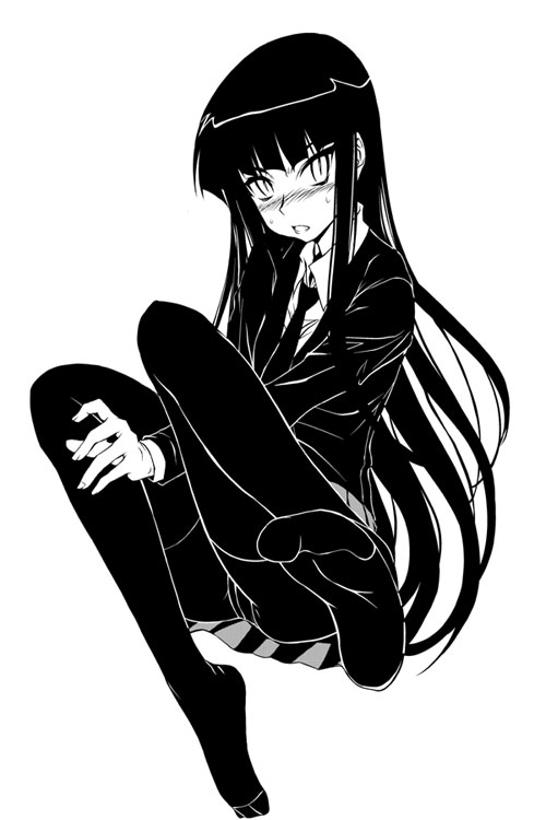 1girlblack pantyhosecrotch seamfeetfemale focusgreyscalelong hairmonochromepantiespanties under pantyhosepantyhosepantyshotsolounderwearupskirtvery long hair