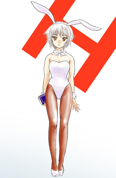 00s1girlanimal earsbare shouldersbookbrown eyesfake animal earspantyhoseplayboy bunnyrabbit earsshort hairthigh gapthighswhite hair
