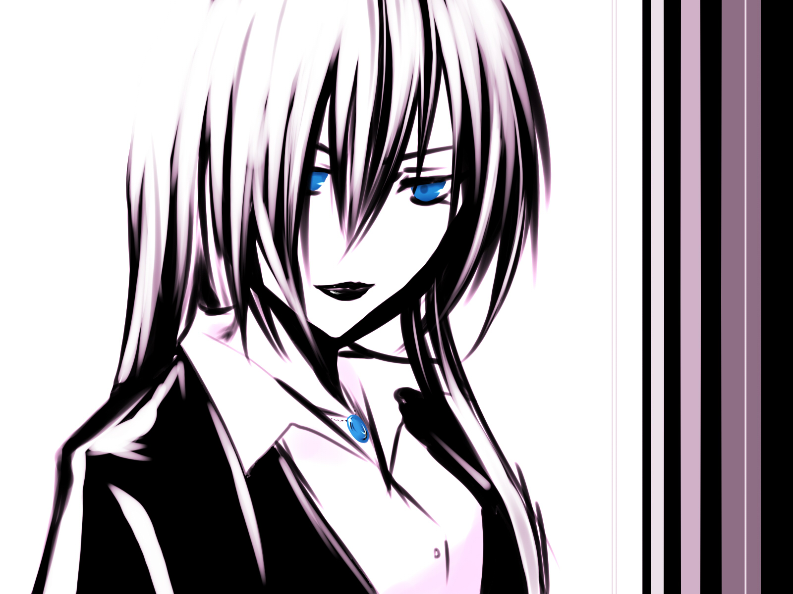 1girlblue eyesfemale focusformal clothesjewelrylipsticklong hairmakeupmonochromenecklacesketchsolospot color