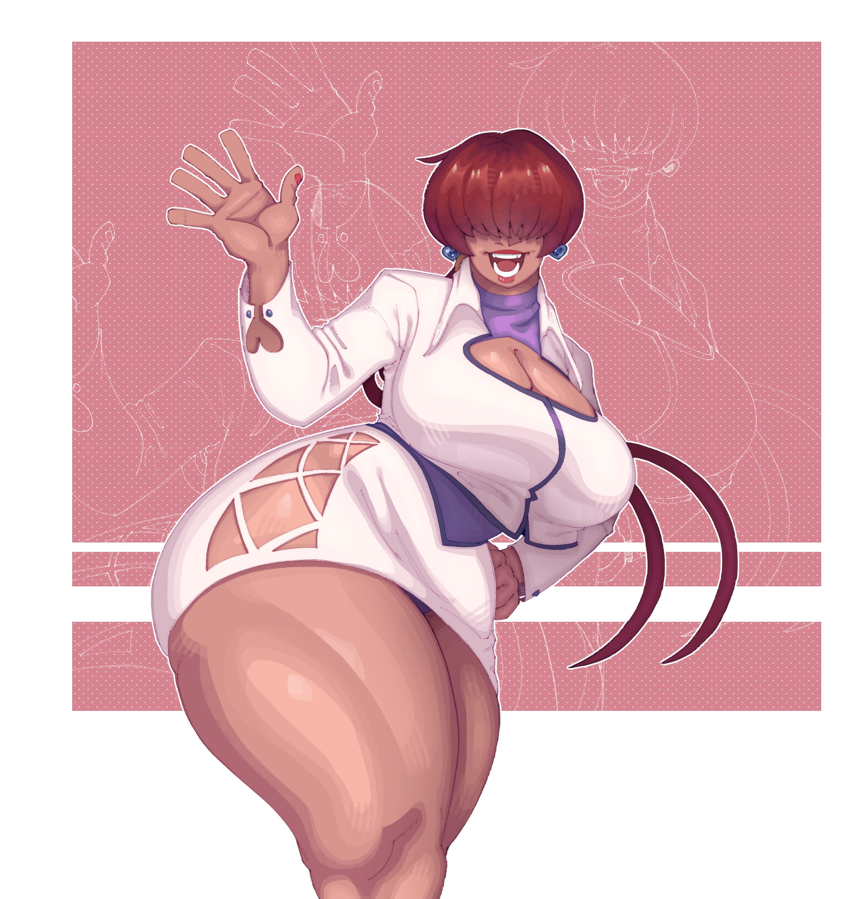 1girlassbreastscleavage cutoutclothing cutoutcurvydressearringsfemale focushand uphearthuge asshuge breastsjewelrylarge breastslong hairmarellarttmuscularmuscular femalepantiesponytailred hairshiny skinskirtsmilesmiley facetwintailsunderwear