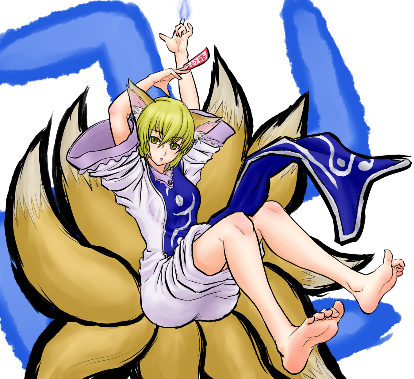 toshi hiroshi, raising heart, raising heart (exceed mode), vivio, comiket, lyrical nanoha, mahou shoujo lyrical nanoha, mahou shoujo lyrical nanoha strikers, tokyo big sight, highres, 00s, borrowed weapon, brown hair, heterochromia, long hair, panties, pantyshot, solo, thighhighs, underwear, very long hair, wind, wind lift, zettai ryouiki