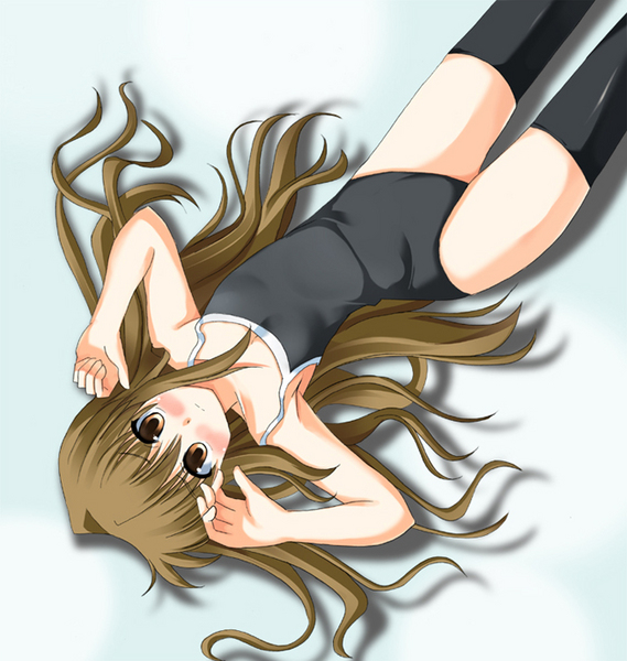 kikyou, kikyou (shuffle), shuffle!, 00s, ahoge, blouse, bow, bowtie, brown eyes, brown hair, character name, copyright name, dated, from side, letterboxed, long hair, pointy ears, school uniform, serafuku, shirt, solo, very long hair, white background, white shirt, yellow bow, yellow bowtie