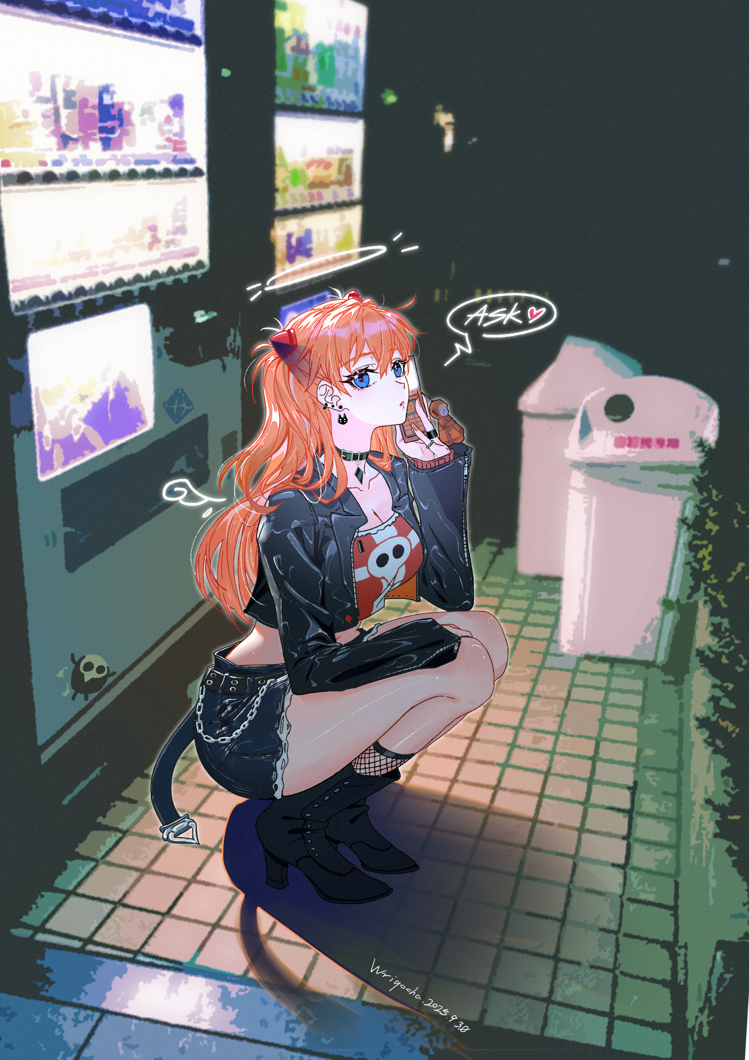1girlalternate costumebeltbelt collarblack bootsblack chokerblack jacketblack shortsblue eyesbootsbreastscameocellphonechainchibichokercleavagecollarcollarbonecrop topcropped jacketdateddolldrawn halodrawn wingsear piercingearringsface filterfingernailsfishnet socksfishnetsfrom sidegoth fashionhair between eyeshair ornamenthairpodshalohand on own kneehand uphigh heel bootshigh heelsholdingholding phonejacketjewelrylayered sleeveslegslong hairlong sleeveslooking at viewermedium breastsmidriffmultiple piercingsmultiple ringsnail polishnightorange hairorange nailsoutdoorsparted lipsphonepiercingred shirtringshiny skinshirtshortssideways glancesleeve zippersmartphonesockssolosquattingthighstrash cantwo side upvending machinexueqingzipper