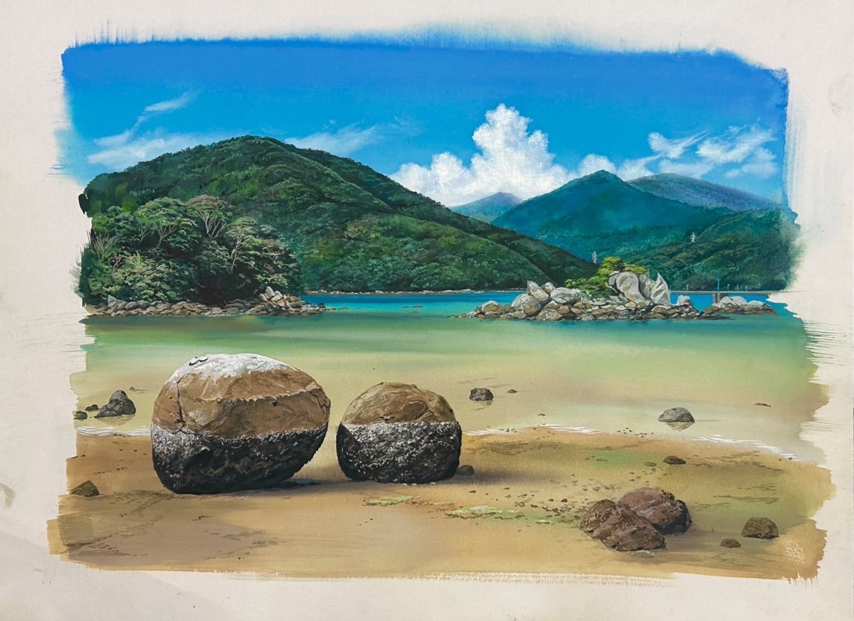 keishin, cerberus, original, wood, traditional media, animal focus, baby animal, dog, multiple heads, no humans, optical illusion, puppy, realistic