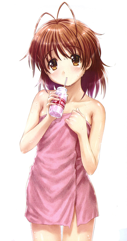 00s1girlantenna hairbathblushbrown eyesbrown hairdrinkingfemale focusnaked towelsolotowelwetwhite background
