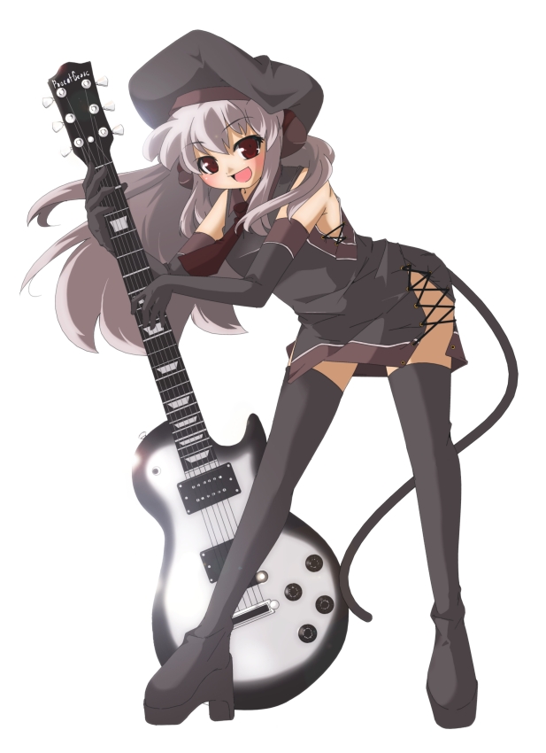 satou atsuki, yin (darker than black), darker than black, lowres, …, 00s, 1girl, bare shoulders, bow, dress, female focus, grey hair, long hair, messy hair, purple dress, purple ribbon, purple skirt, red eyes, ribbon, simple background, skirt, solo