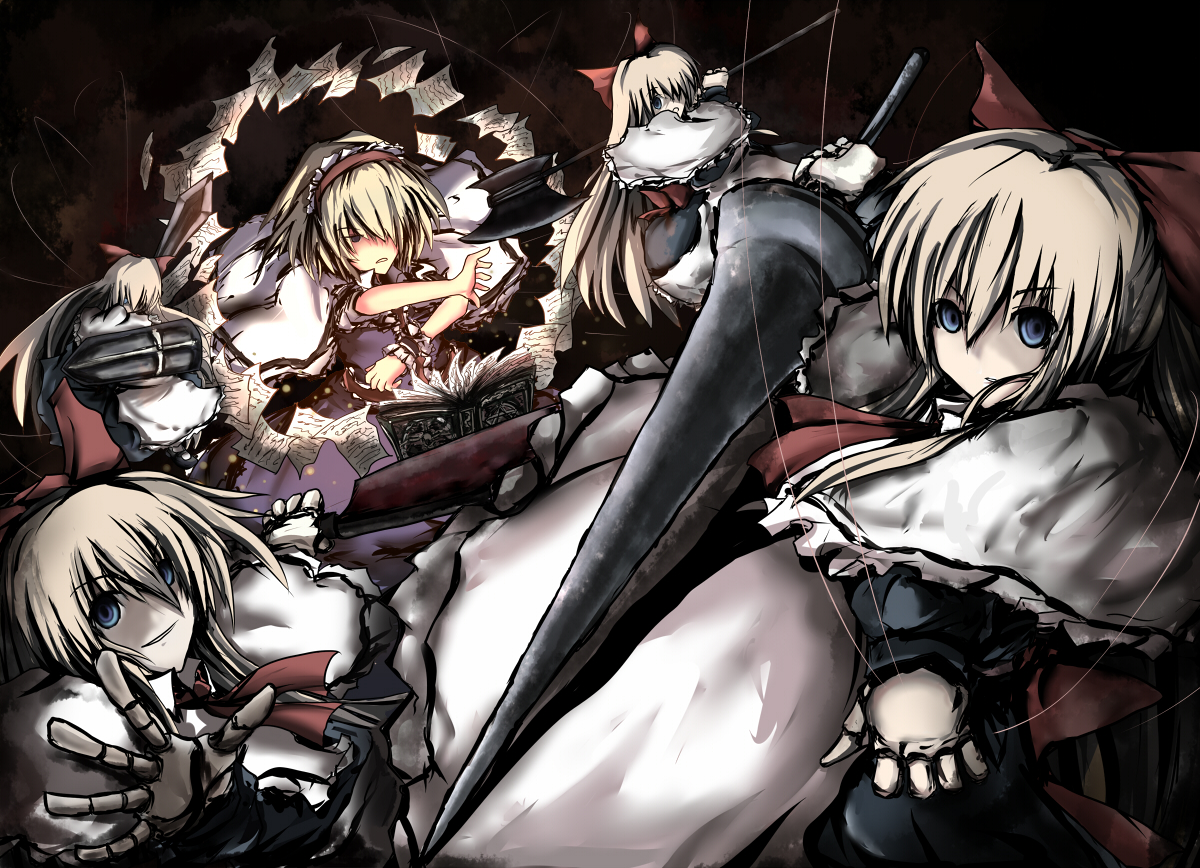1girlaxeblonde hairblue eyesbookdoll jointsfemale focusjointslancepolearmshieldshort hairsolospearweapon