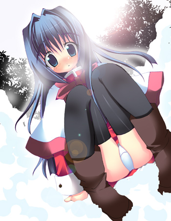 piko, haruno futaba, haruno kazuha, fu-ta-ba, black legwear, game cg, jpeg artifacts, 2girls, ;d, denki anma, feet, footjob, kneehighs, multiple girls, open mouth, panties, pantyshot, pink panties, pleated skirt, red hair, school uniform, serafuku, skirt, smile, socks, thighhighs, underwear, wink, yuri