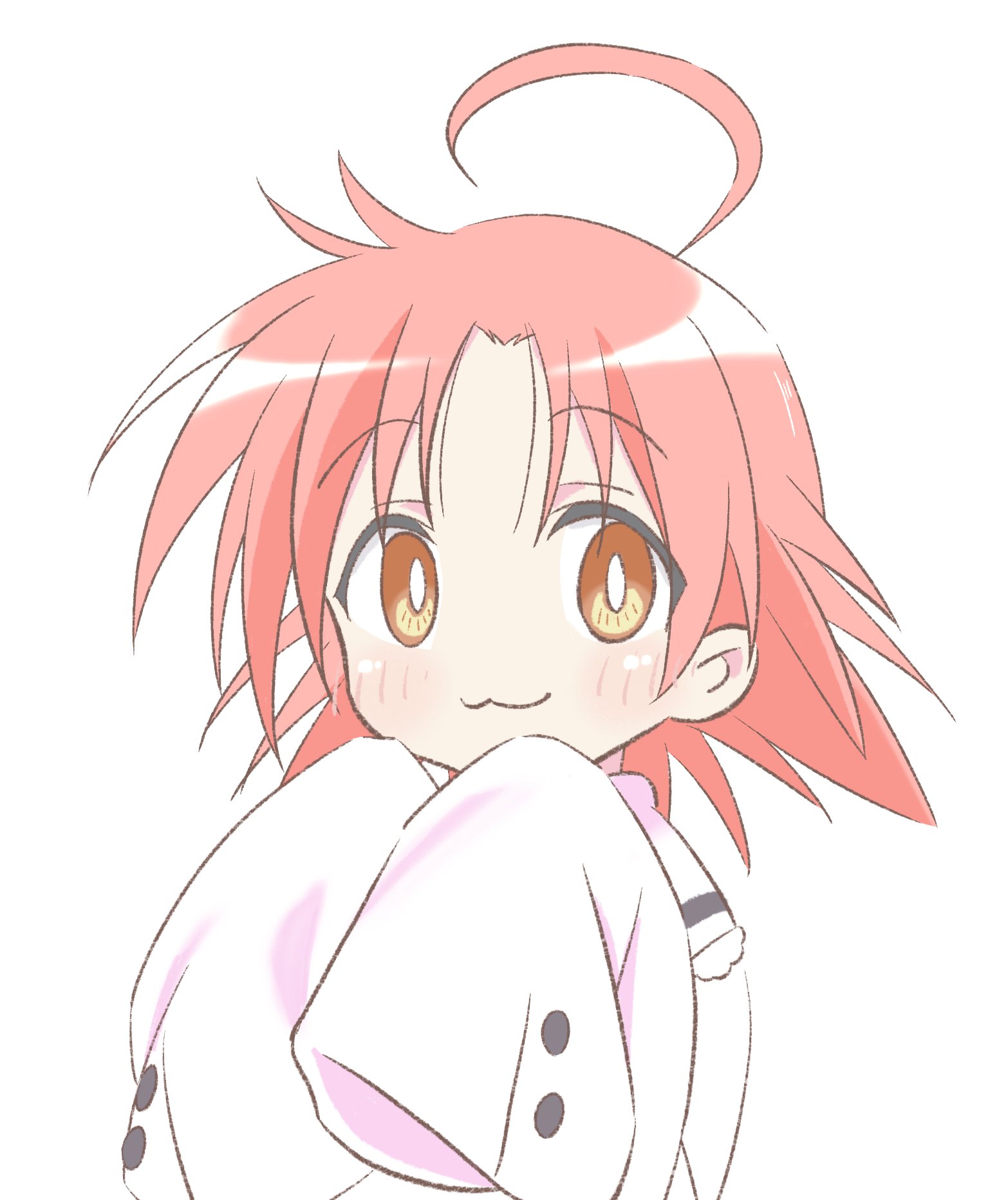 :31girlahogeclosed mouthlong sleeveslooking at viewermessy hairown hands togetherparted bangspaw posepink hairshirtshort hairsimple backgroundsleeves past fingerssleeves past wristssmilesoloupper bodywhite backgroundwhite shirtyellow eyes