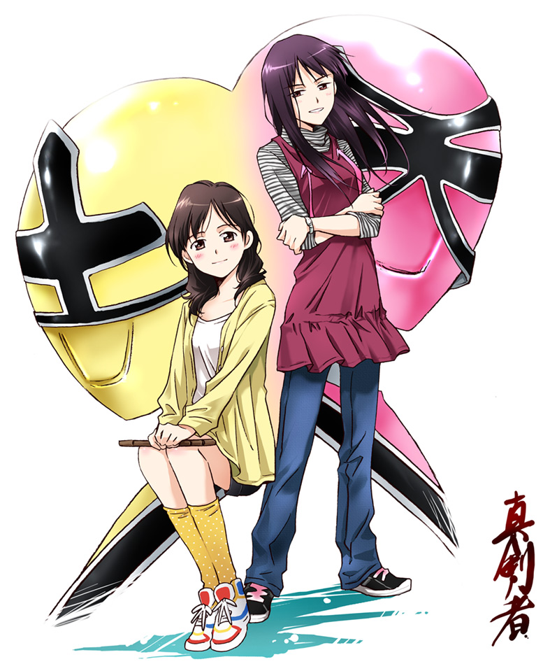ixy, misaka mikoto, shirai kuroko, toaru kagaku no railgun, toaru majutsu no index, 00s, 2girls, :t, blush, bow, brown eyes, brown hair, closed eyes, hair bow, hair ornament, hairclip, heart, holding another's wrist, multiple girls, pink background, ribbon, saliva, school uniform, short hair, skirt, twintails