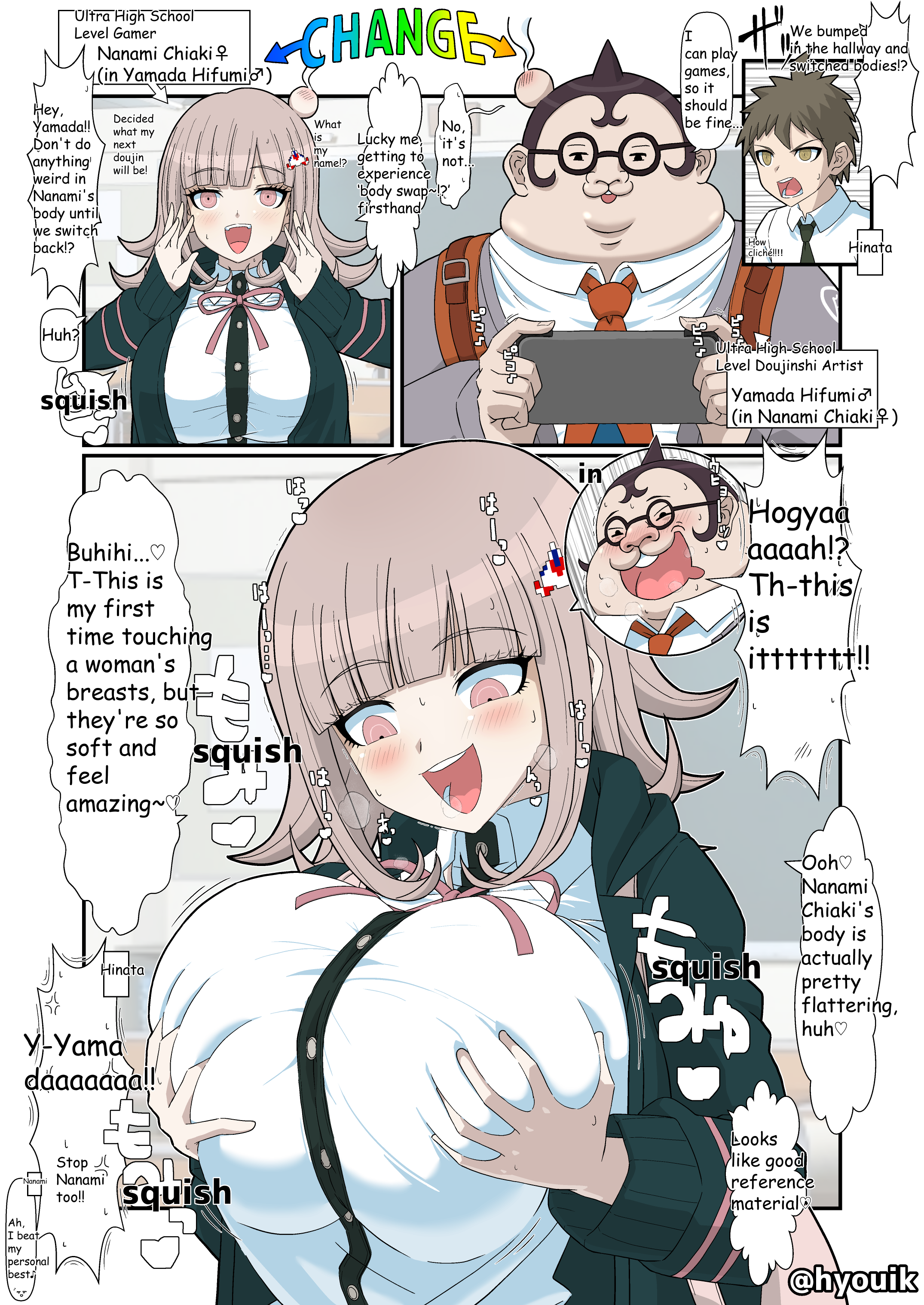 :d1boy1girl2boysahogealternate breast size (larger)artist nameblack hairblack shirtblushbody switchbreastsbrown haircollared shirtenglish textfatfat mangrabbing own breasthandheld game consolehappyholdingholding handheld game consolehuge breastsjacketlong sleevesmedium hairmultiple boysneck ribbonnecktieopen clothesopen jacketopen mouthorange necktiepersonality switchpervertpink eyespink ribbonribbonshirtsmilewhite shirt