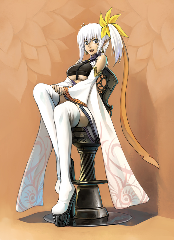 1girlbootsbreastsfemale focuslarge breastspointy earssolothigh bootsthighhighsunderboobwhite hair