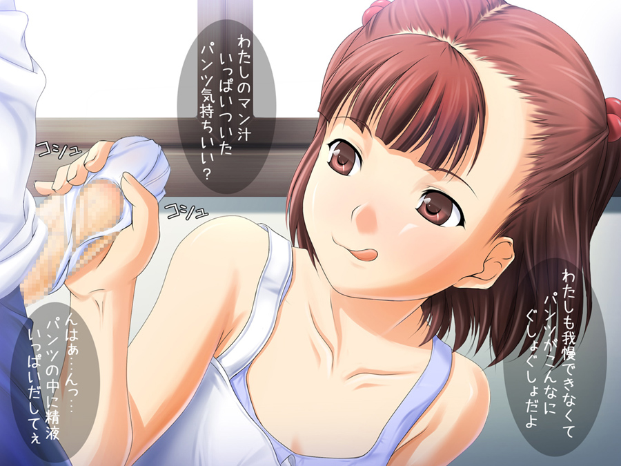 1boy1girlhair bobbleshair ornamenthandjobheterololipanties on penispenisred hairtext focustongue