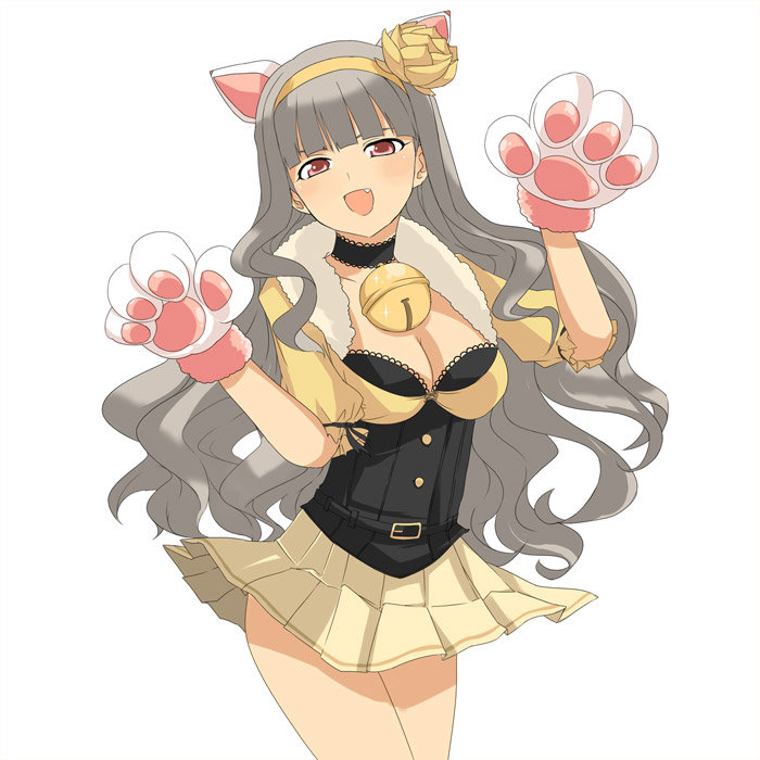 aotsuki eito, sumino takumi, the hundred line -last defense academy-, highres, 2boys, ahoge, animal ears, black gloves, black hair, blue eyes, blue jacket, dog ears, drawstring, eyelashes, glasses, gloves, grey hair, grey jacket, hair between eyes, holding hands, hood, hood down, hooded jacket, hoodie, jacket, jacket over hoodie, kemonomimi mode, long sleeves, lop rabbit ears, male focus, multicolored hair, multicolored jacket, multiple boys, open clothes, open jacket, open mouth, rabbit ears, red hair, red pupils, short hair, simple background, skirt, sleeves past wrists, smile, streaked hair, two-tone hair, two-tone jacket, upper body, white background, white hoodie, xuebai de yumao 553041