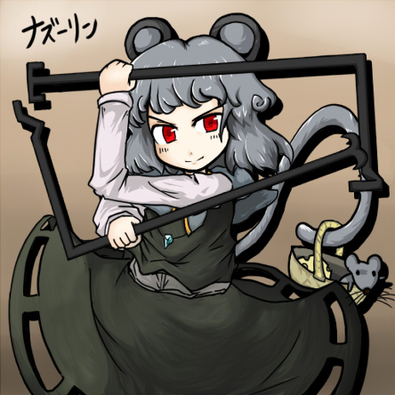 1girlanimal earscharacter namefemale focusgradient backgroundgrey hairmouse (animal)mouse earsred eyesshort hairsolostandingtail