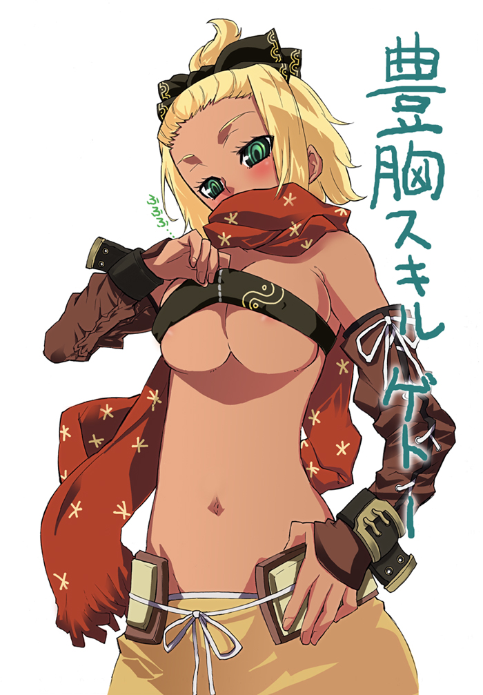 1girlareola slipblonde hairbreastsdark skindark-skinned femalefemale focusmidriffnipple slipnipplesscarfsolounderboob