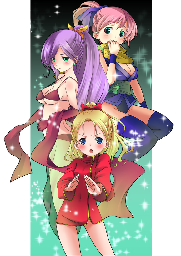 1990s (style)3girlsbikinibikini top onlyblonde hairblue eyesblushbowbreastsdancerearringsgreen eyeshair bowjewelrylarge breastslong hairmedium breastsmonkmultiple girlsninjapink hairponytailpurple hairribbonshort hairswimsuitthighhighsunderboob
