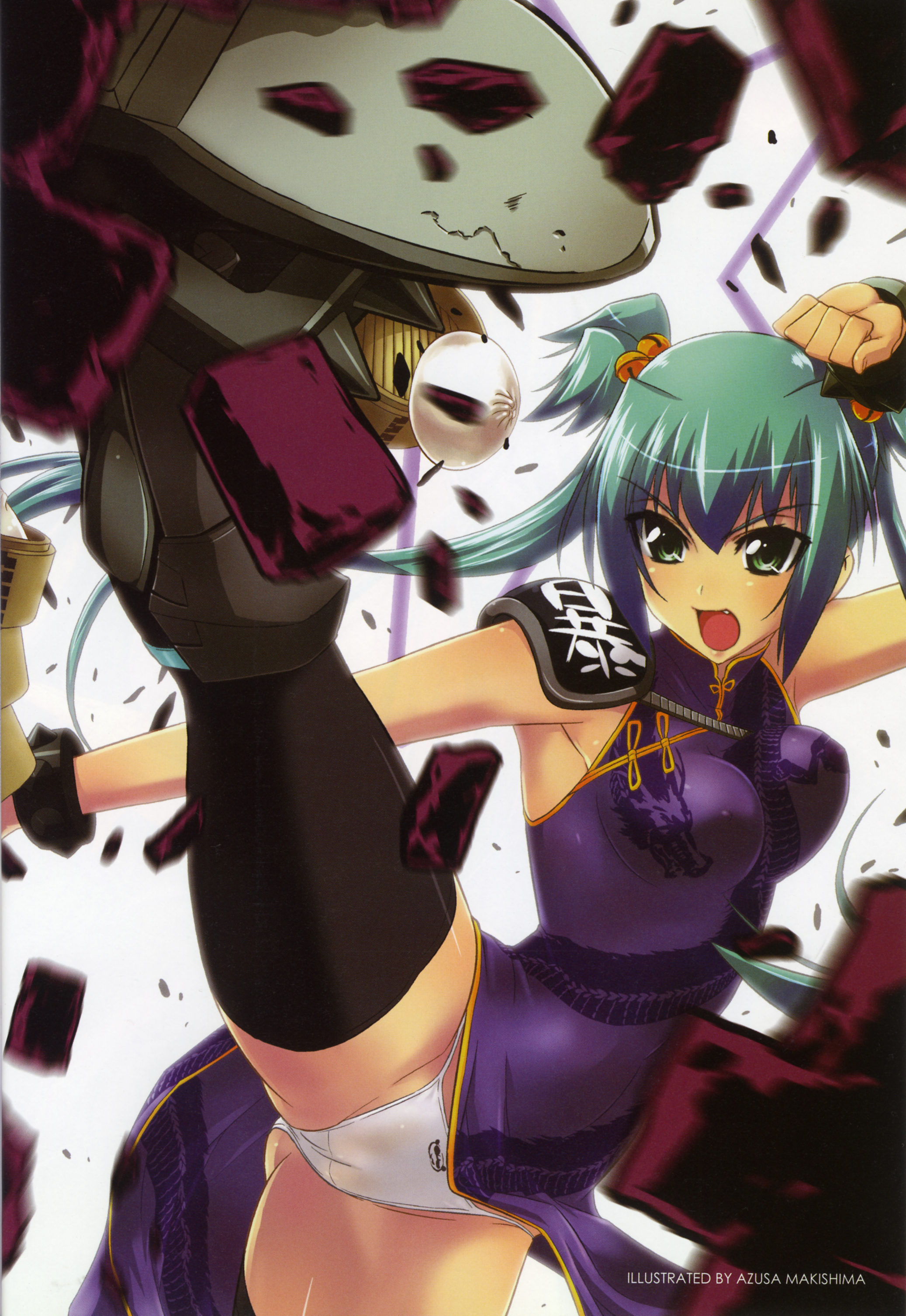 1girlblack thighhighsbraceletbreakingbreastsbrokenbun covercameltoechina dresschinese clothesdressfemale focusgreen eyesgreen hairhair bobbleshair ornamentimpossible clothesimpossible shirtjewelrykickingmatching hair/eyesmedium breastsnipplessee-through clothesshirtsolospiked braceletspikesthighhighs