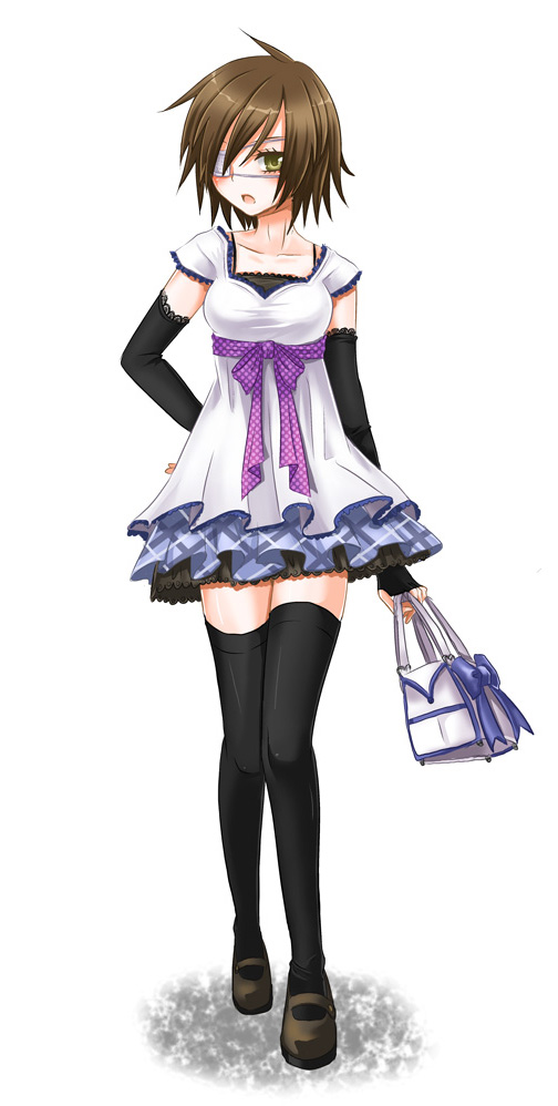 shiizaki hinaki, tachibana chiharu, present for you, 1girl, ass, blue bra, blue panties, blush, bra, breasts, brown hair, female focus, frilled bra, frills, garter belt, lace, lace-trimmed panties, lace trim, lingerie, long hair, nipples, panties, print bra, print panties, solo, thighhighs, underwear, white bra, white panties, white theme, white thighhighs