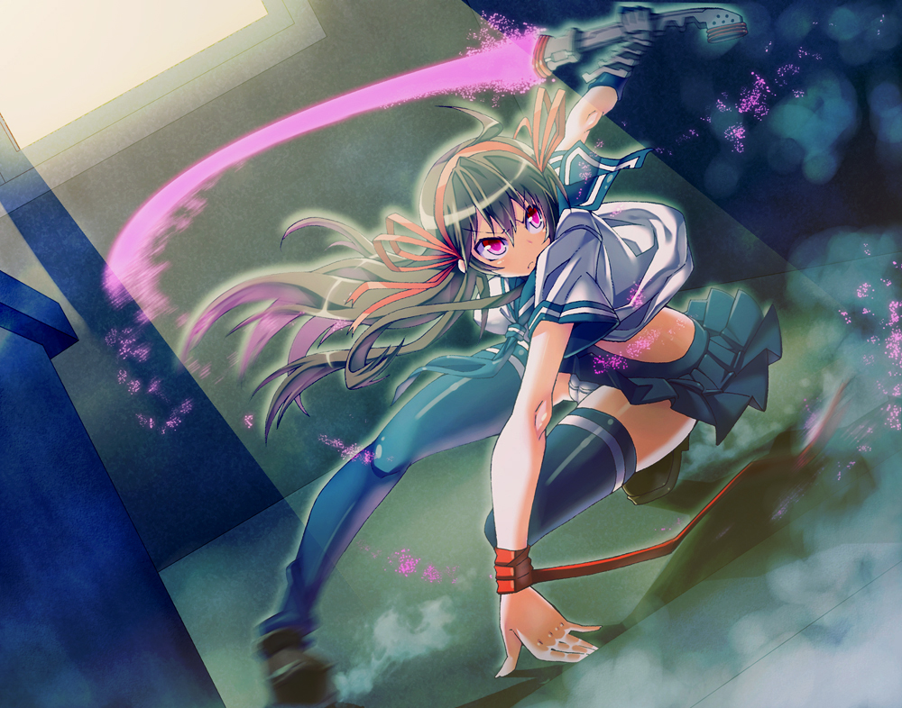asakura nemu, shirakawa kotori, da capo, da capo i, lowres, 00s, 2girls, battle, choker, fighting, multiple girls, oekaki, ribbon, thighhighs