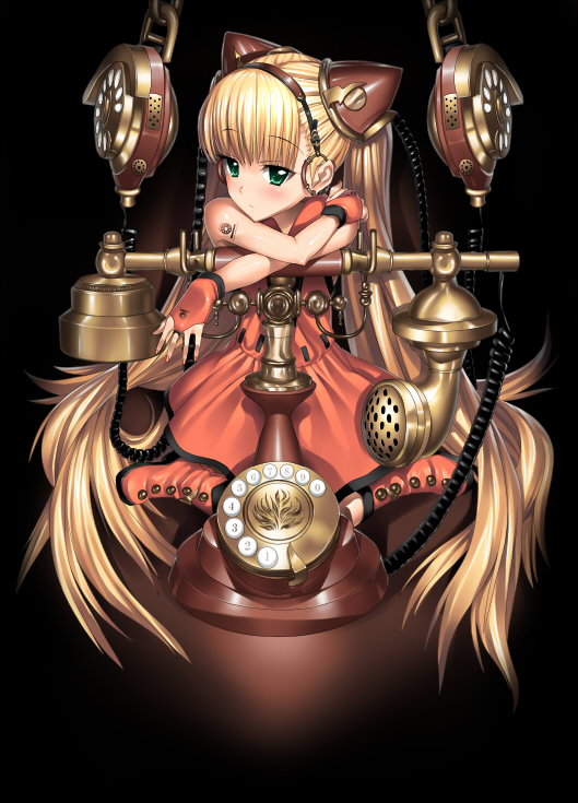 1girlblonde haircorded phonefemale focusfingerless glovesgloveslong hairpersonificationphonesolotwintailsvery long hair