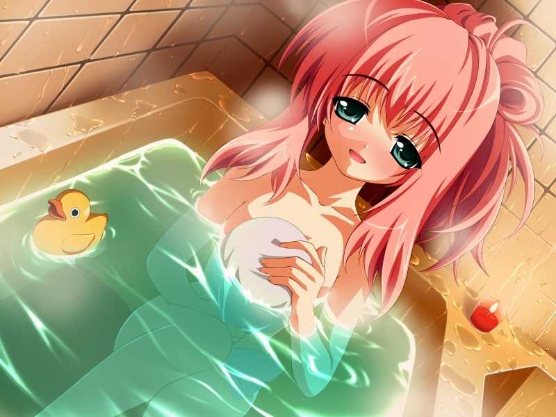 1girlbathblushcandlecollarbonecovering privatesfemale focusfingernailsgreen eyeshalf-closed eyeslegs togetherlong hairlooking at viewernudeopen mouthponytailred hairrubber ducksittingsolo