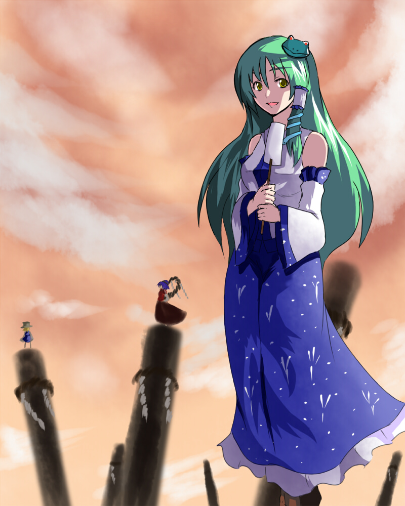 ruru (artist), ruru (heat haze), furude rika, higurashi no naku koro ni, 00s, 1girl, animal ears, blue hair, blunt bangs, bow, cat ears, cat tail, female focus, hime cut, kemonomimi mode, letterboxed, long hair, outstretched arms, panties, pantyshot, pink bow, purple eyes, skirt, solo, spread arms, standing, suspender skirt, suspenders, tail, underwear, white panties