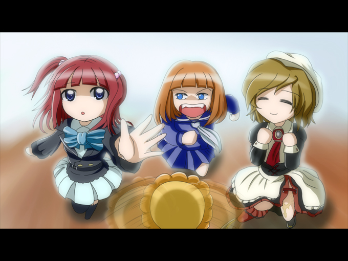 00saged downblue eyesbowbrown hairchibiclosed eyeshair bobbleshair ornamentletterboxedorange hairred hairshort hairskirtthighhighs