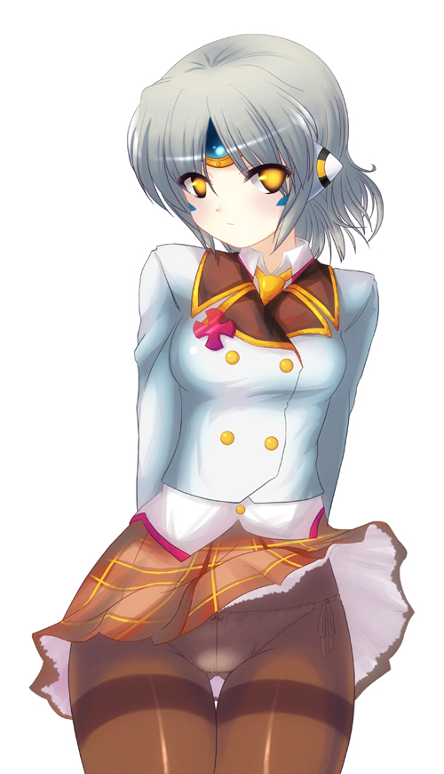 1girlblushbrown pantyhoseclothes liftcrotch seamfemale focuspantiespanties under pantyhosepantyhosepantyshotplaid clothesplaid skirtschool uniformserafukushort hairside-tie pantiesskirtskirt liftsolothigh gapthighband pantyhosethighsunderwearupskirtwhite backgroundwindwind liftyellow eyes