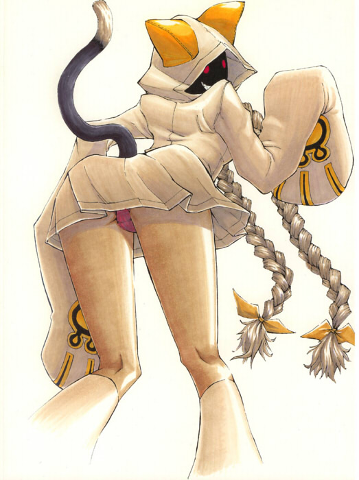chichi kurage ss, mihama chiyo, azumanga daiou, tagme, 1girl, breasts, censored, female focus, flat chest, loli, looking at viewer, nude, orange hair, pussy, short hair, short twintails, simple background, small areolae, small breasts, small nipples, solo, twintails, white background