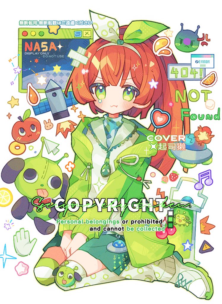 1girl404asymmetrical legwearblushbow hairbandclosed mouthcursorfull bodygreen eyesgreen hairbandgreen jacketgreen skirtgreen thighhighshairbandhttp status codejacketlong hairlong sleeveslooking at viewermismatched legwearopen clothesopen jacketorange hairover-kneehighspolka dotpolka dot thighhighsrocketshirtshoessittingskirtsneakerssolostriped clothesstriped thighhighsteardropthighhighsv-shaped eyebrowswarizawhite shirtwhite shoeswindow (computing)