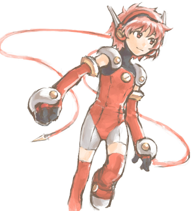 47agdragon, original, dress, headphones, red hair, smile, white hair
