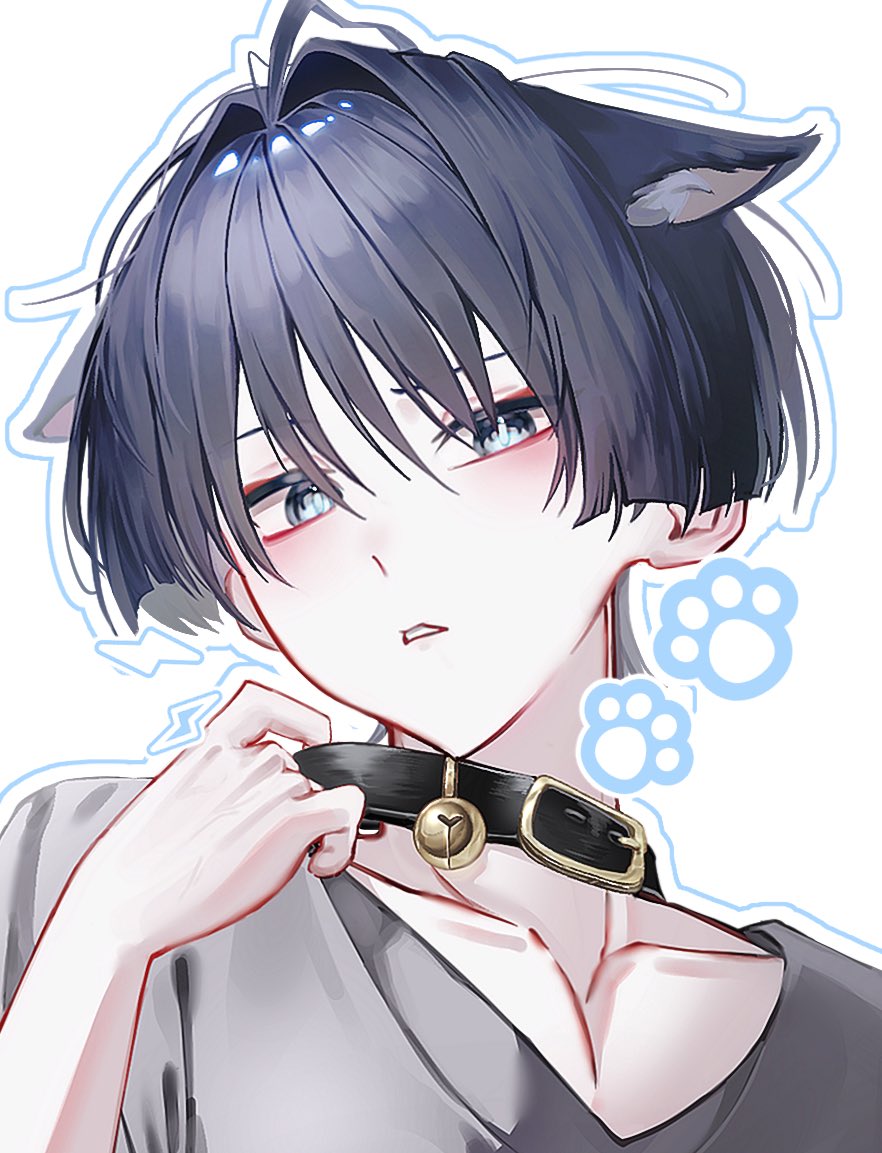 1boyanimal ear fluffanimal earsbellbeltbelt collarblack beltblunt endscat boycat earschoppy bangscollarcollar tugcollarbonecolored inner haireyelinereyeshadowgold bucklegrey eyesgrey hairgrey shirthair intakeshand upjingle belllooking at viewermakeupmale focusmulticolored hairneck belloutlineparted lipspaw printportraitred eyelinerred eyeshadowshirtskalamushusolotsurimev-neckveinsveiny handswhite backgroundwhite mouthwhite outline