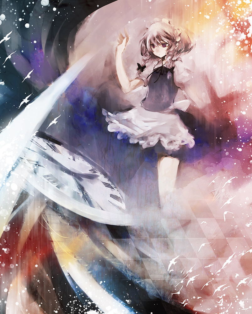 wasu, eila ilmatar juutilainen, sanya v. litvyak, strike witches, world witches series, translated, 00s, 2girls, = =, animal ears, cat ears, chibi, flying, greyscale, hirschgeweih antennas, monochrome, multiple girls, necktie, pantyhose, silhouette