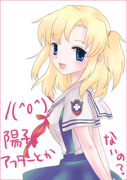 00s1girlblonde hairblue eyesfemale focusgenderswapopen mouthribbonschool uniformshort hairside ponytailsmilesolo