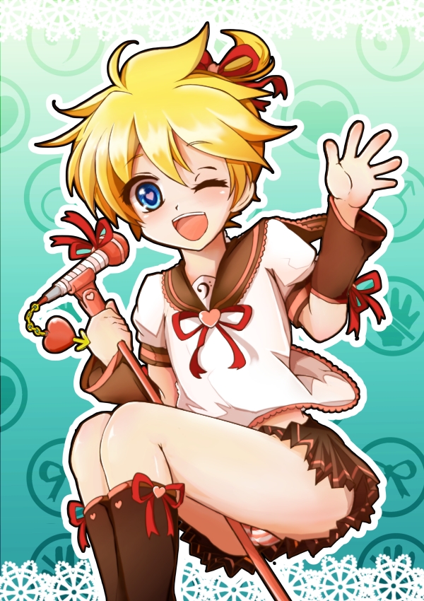 onija tarou, gloves, green eyes, green hair, long hair, oekaki, panties, pantyshot, school uniform, serafuku, solo, underwear