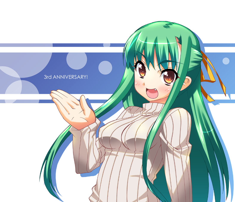 una (dpaxg), sonozaki mion, higurashi no naku koro ni, 00s, 1girl, female focus, green eyes, green hair, hand on own hip, hip focus, long hair, matching hair/eyes, ponytail, school uniform, serafuku, skirt, solo