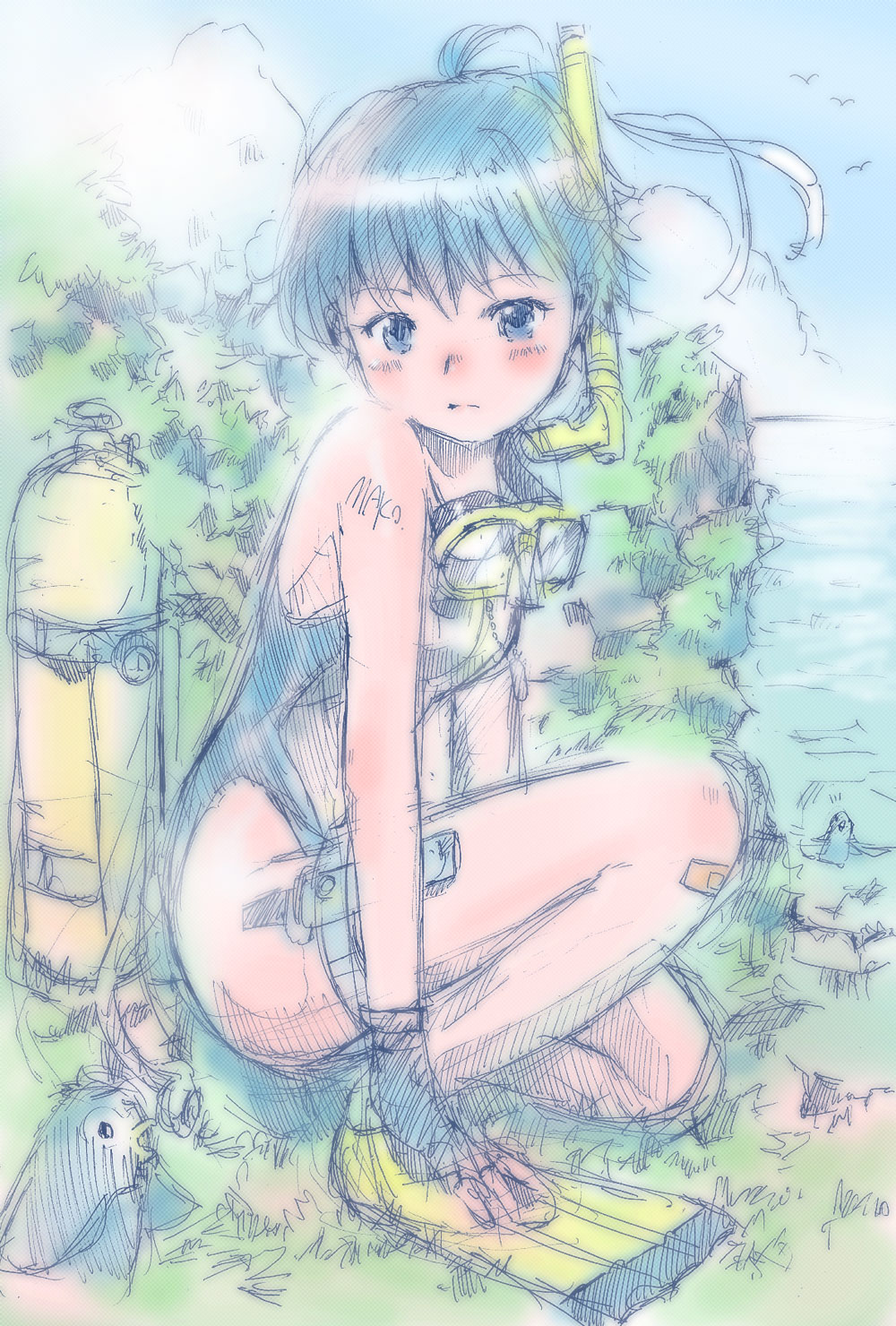 kawazoe tamaki, bamboo blade, 00s, 1girl, female focus, figure, shinai, solo, sword, watermark, weapon